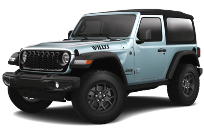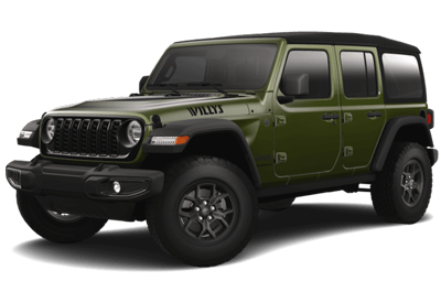 Modern off‑road capability is met by original 4×4 spirit. The Wrangler Willys is an off‑roading powerhouse, offering 33‑inch off‑road tires, Rubicon shocks, and rock rails along with its legendary Trail Rated capability.